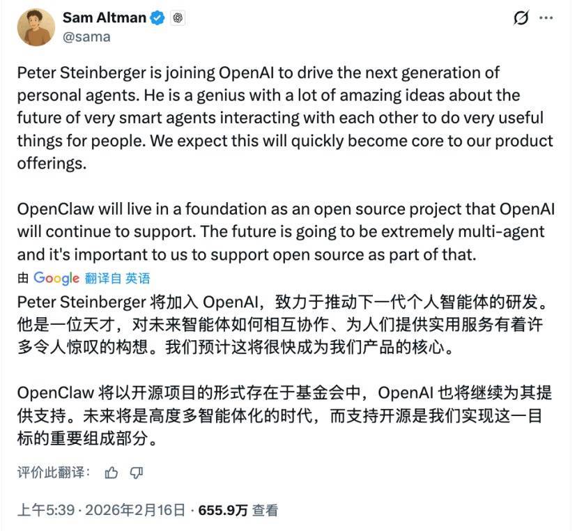 OpenClaw应该会络续以原形式存在,而非被OpenAI吸纳。