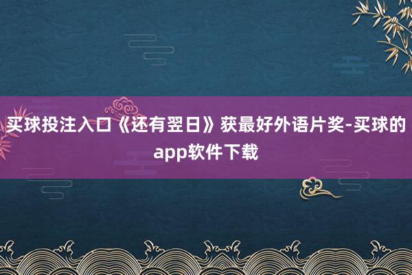 买球投注入口《还有翌日》获最好外语片奖-买球的app软件下载