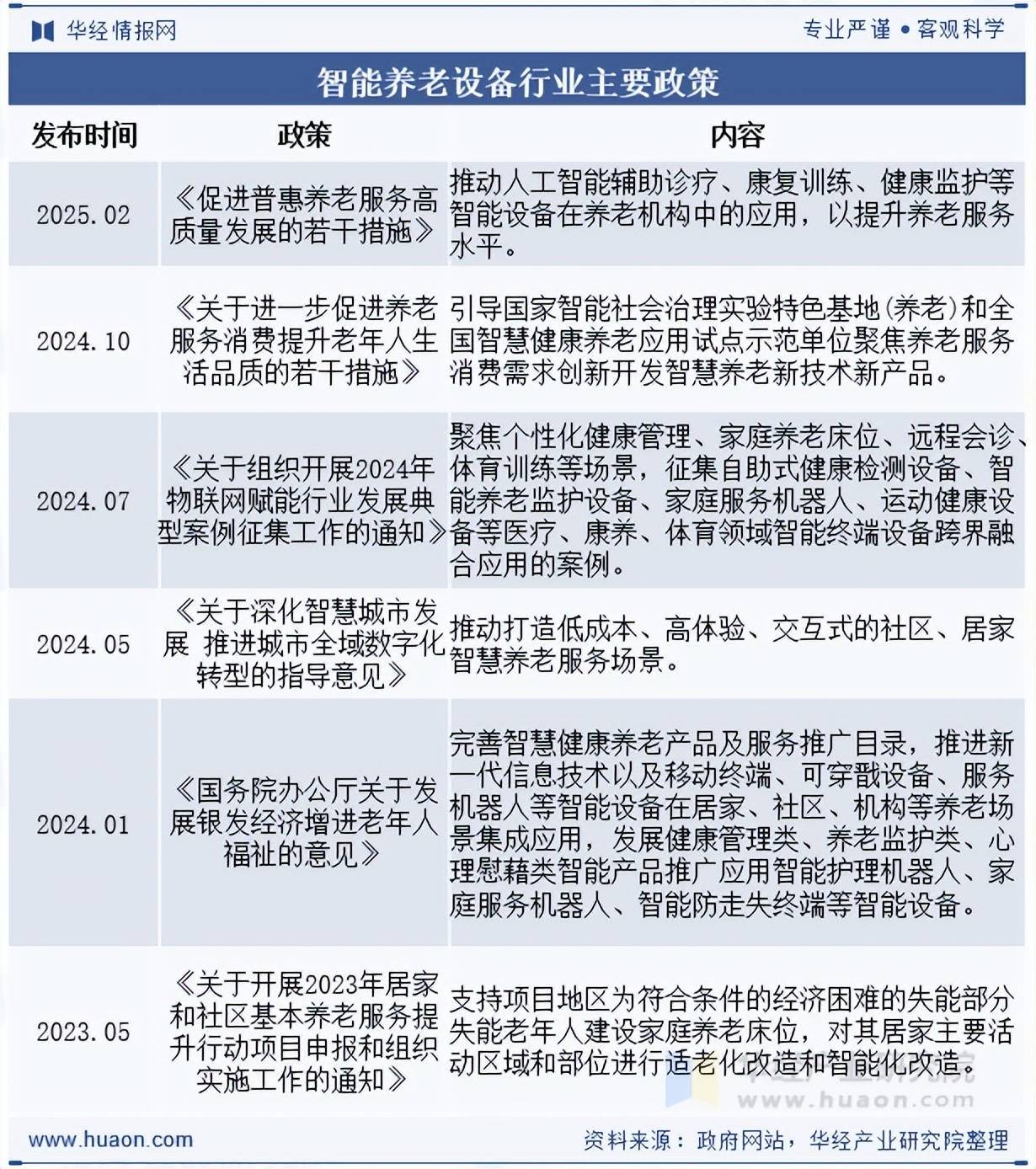 近几年国度层面接踵出台智能养老设备行业关系政策维持。2024年1月由国务院办公厅发布《对于发展银发经济增进老年东说念主福祉的意见》,强调打造灵敏健康养老新业态,鼓动智能设备在居家、社区、机构等养老场景的集成应用,发展包括智能看管机器东说念主等在内的多种智能家具。2025年2月,国度发展鼎新委等八部门斡旋髻布《促进普惠养老作事高质地发展的多少措施》明确建议,推动东说念主工智能赞成疗养、康复磨练、健康监护等智能设备在养老机构中的应用,以擢升养老作事水平。