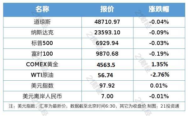 1、12月26日,好意思股三大指数收盘均微跌,纳指跌0.09%,本周累涨1.22%;说念指跌0.04%,本周累涨1.2%;标普500指数跌0.03%,本周累涨1.4%。纳斯达克中国金龙指数收涨0.72%,本周累涨0.64%。